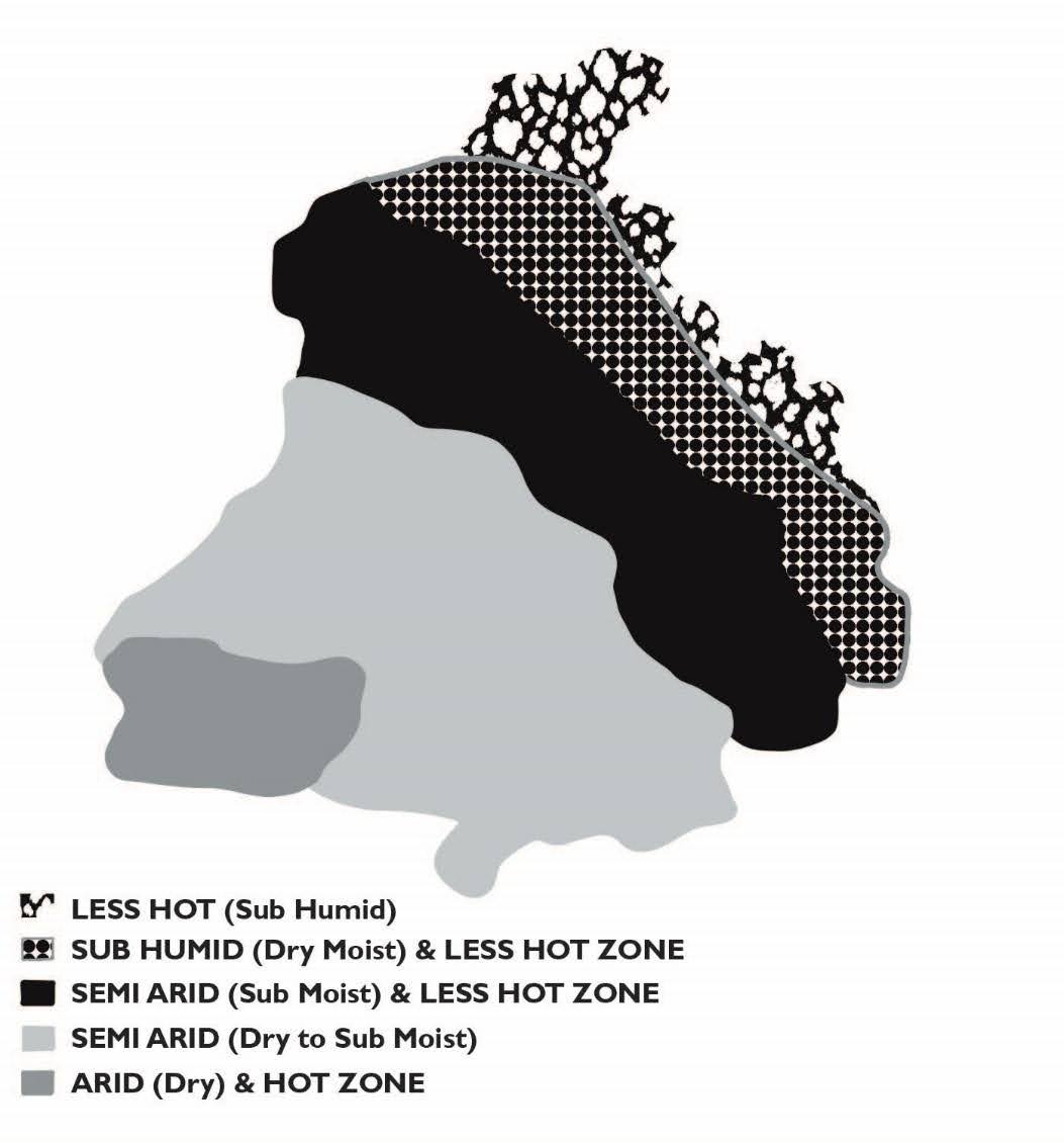 The state of Punjab, located in the subtropical belt in the northwestern part of the Indian subcontinent, is approximately 1600 km away from the Bay of Bengal. Its geographical features include the Shivalik Hills on its northwestern border and Rajasthan to the south, which influence its climatic conditions. Punjab experiences extreme temperatures, with very hot summers and cold winters. Areas near the foothills of the Himalayas receive heavy rainfall, while regions farther from the hills experience lower rainfall and higher temperatures.