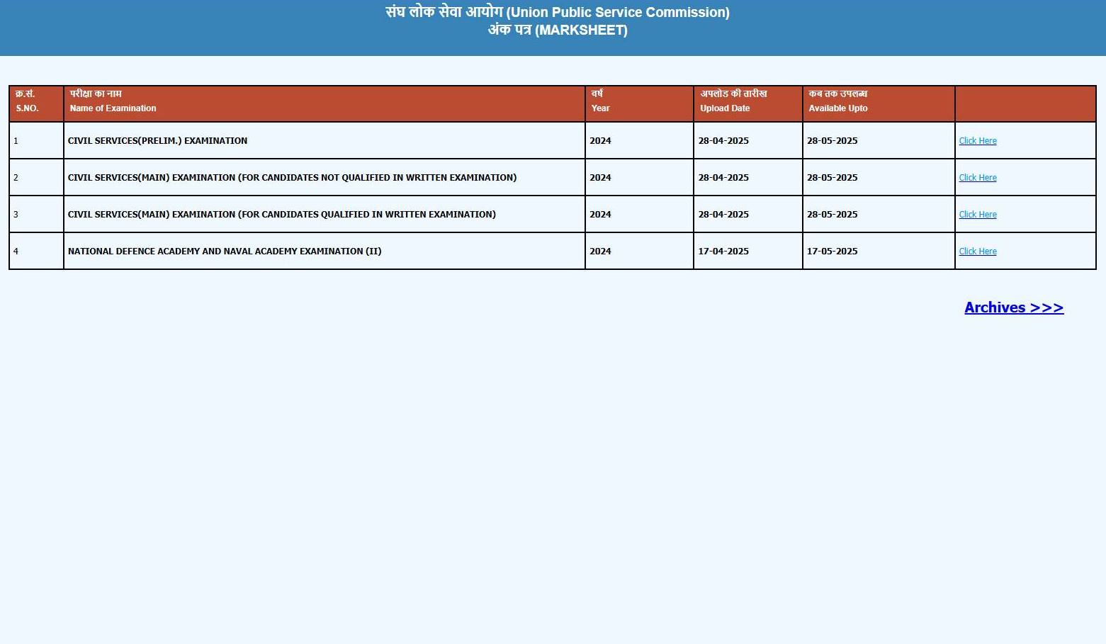 UPSC has activated links for downloading the individual marks of candidates who appeared for different stages of the exam. The links are valid from April 28, 2025, to May 28, 2025. Direct Download Links: